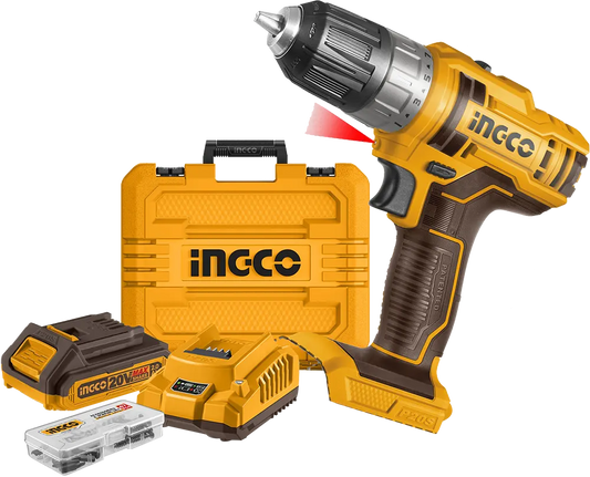 INGCO 20V PS+ C/L DRILL B/L 66NM IMP KIT +ACC