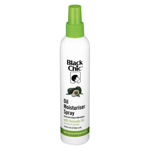 Black Chic avocado oil moisturiser spray soothes dry & flaky scalp.