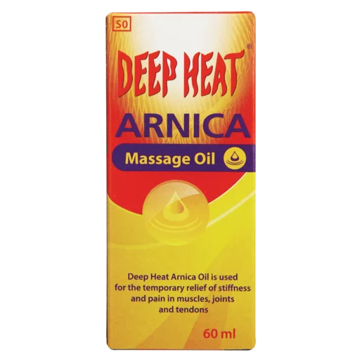 Deep Heat Arnica Massage oil is used for the temporary relief of stiffness and pain in the muscles, joints and tendons.