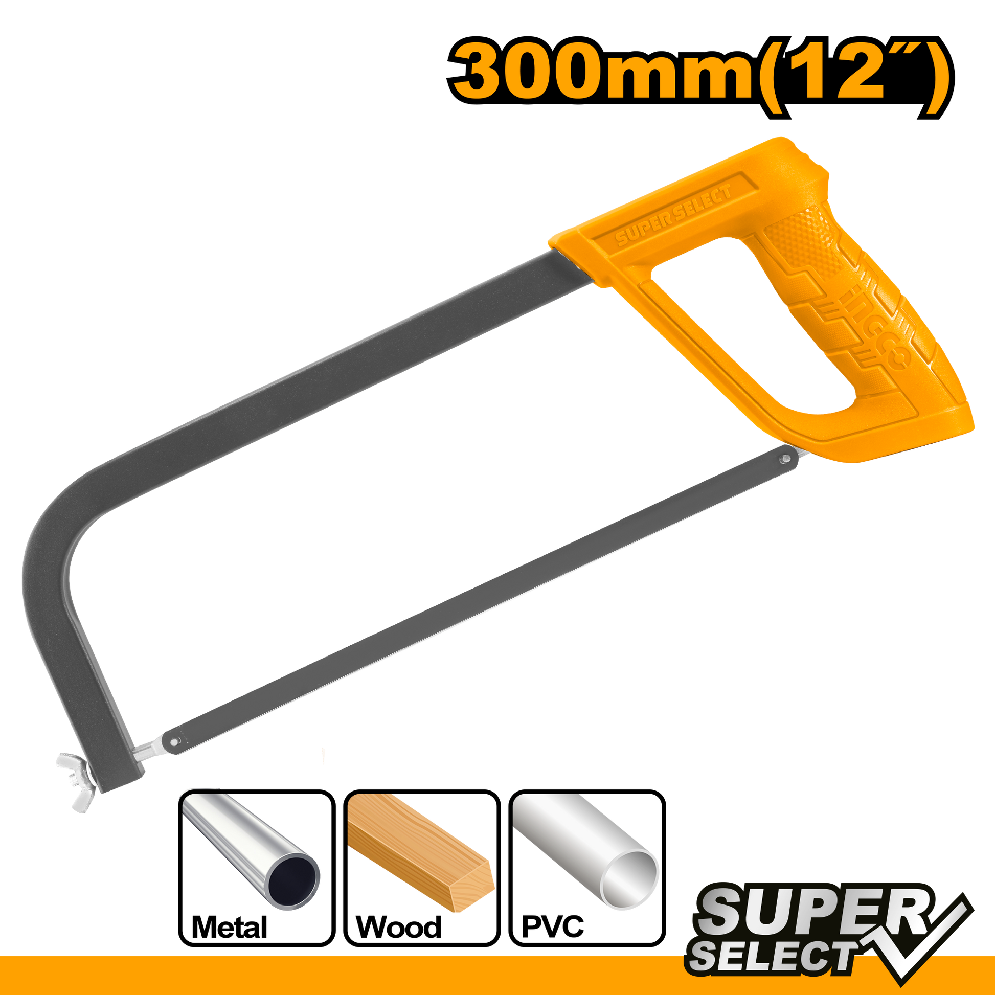 Size: 300 mm/12" Handle material: ABS plastics Soft grip design. Comfortable, easy to use, lightweight. Includes: 1 pieces 300 mm (12") 24 TPI M2+D6A bi-metal Blade (HSBB22248) Suitable for: Cutting metal, plastic, wood Packed by paper card.