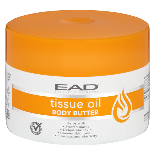 EAD Tissue Oil Body Butter is a highly effective moisturiser, specially formulated with vitamins A and E, sweet almond oil, sunflower oil, argan oil and jojoba oils. It is perfect for the treatment of scars and stretch marks, uneven tone and dehydrated skin. It promises to restore firmness and elasticity while leaving your skin soft and silky smooth.